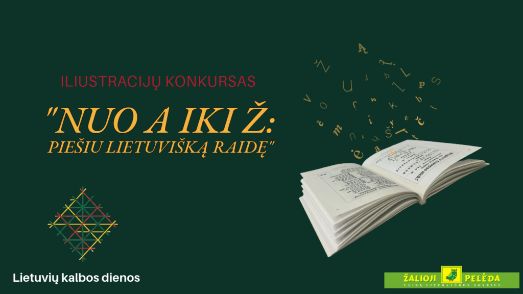 Konkurso tema – lietuviškos abėcėlės raidės iliustracija.