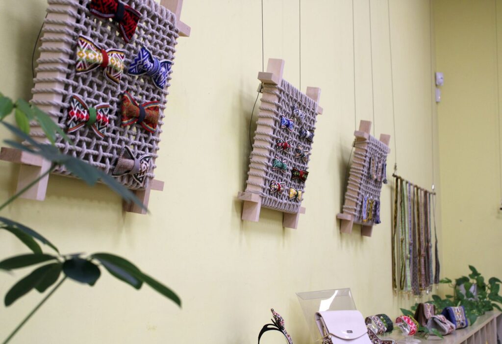 Pirmiausia akį patraukia didžiausi kūriniai – išskirtinis tautinis kostiumas bei išaustas Tautiškos giesmės tekstas. Greta tradicinių rankų darbo įvairių raštų, spalvų, pločio, ilgių kruopščiai austų tautinių juostų, pristatomi šiuolaikiniai aksesuarai, sukurti remiantis autentiškais lietuvių liaudies motyvais: dekoratyviniai diržai rankinėms, krepšiai, plaukų lankeliai, apyrankės, peteliškės, kaklaraiščiai, knygų skirtukai, raktų pakabukai iš austos juostos. Tai ne tik išskirtinės stiliaus detalės, bet ir pagarbos lietuviškam paveldui išraiška, prasmingas akcentas kasdienėje aprangoje ar ypatingoms progoms.