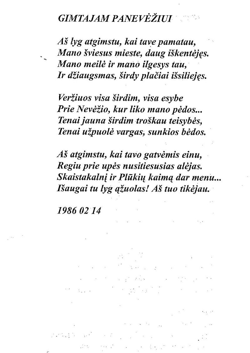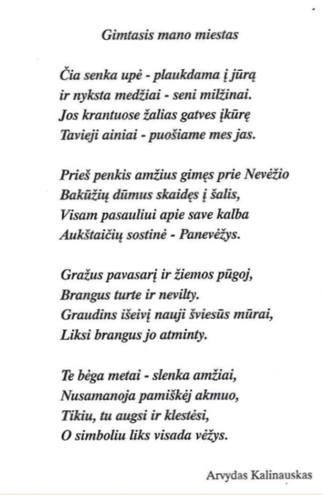 Kalinauskas, Arvydas. Mano gimtasis miestas // Judokienė, Jadvyga. Nebaigtas sakinys…. – Panevėžys: Panevėžio spaustuvė, 2006. – P. 12.
