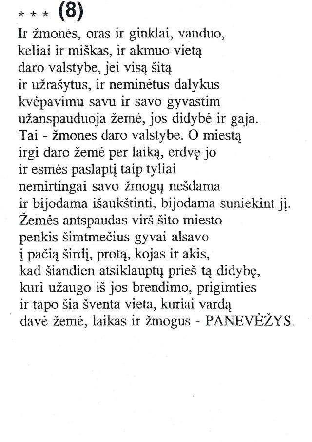 Kutrevičius, Anicetas. Panevėžy // Mano padangė: [eilėraščiai]. – Panevėžys: Nevėžio spaustuvė, 2003. P. 56.