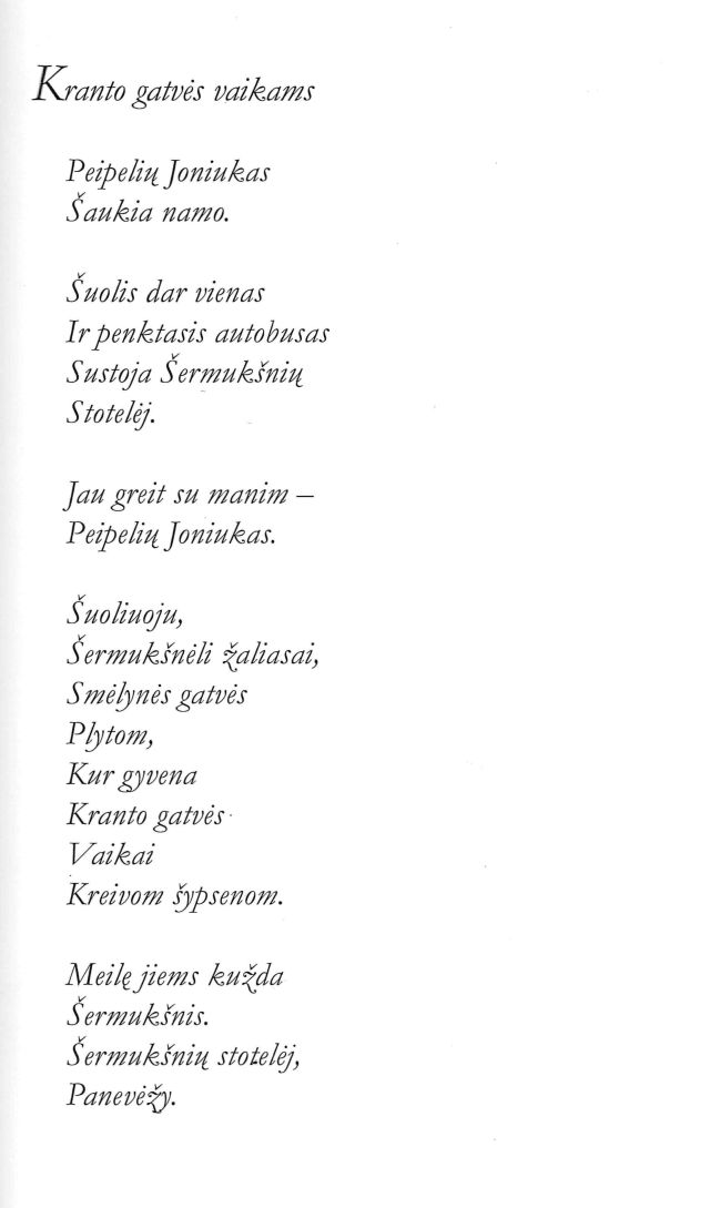 Laurenčikaitė, Silvija. Kranto gatvės vaikams // Mano laiko spalvos. – Vilnius: Alma littera, 1999. – P. 61.