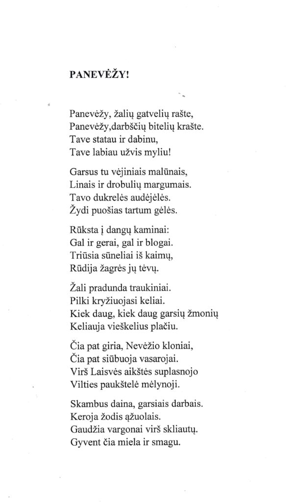 Kvaselienė, Valerija. Gimtajam Panevėžiui // Dek, žiburėli, lange. – Panevėžys, 2000. – P. 25.