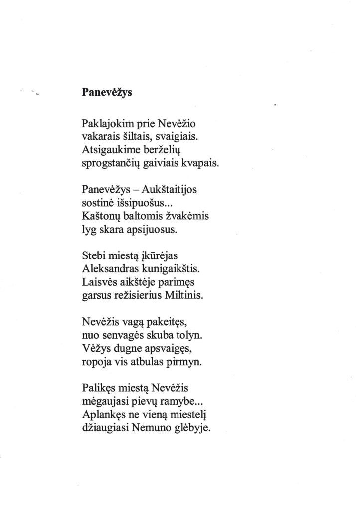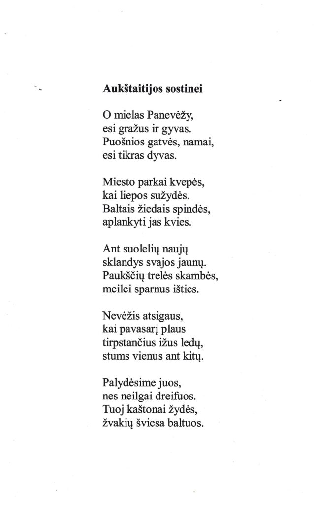 Valentinavičienė, Emilija. Aukštaitijos sostinei // Šerkšno giesmė. – Panevėžys, 2019. – P. 28.