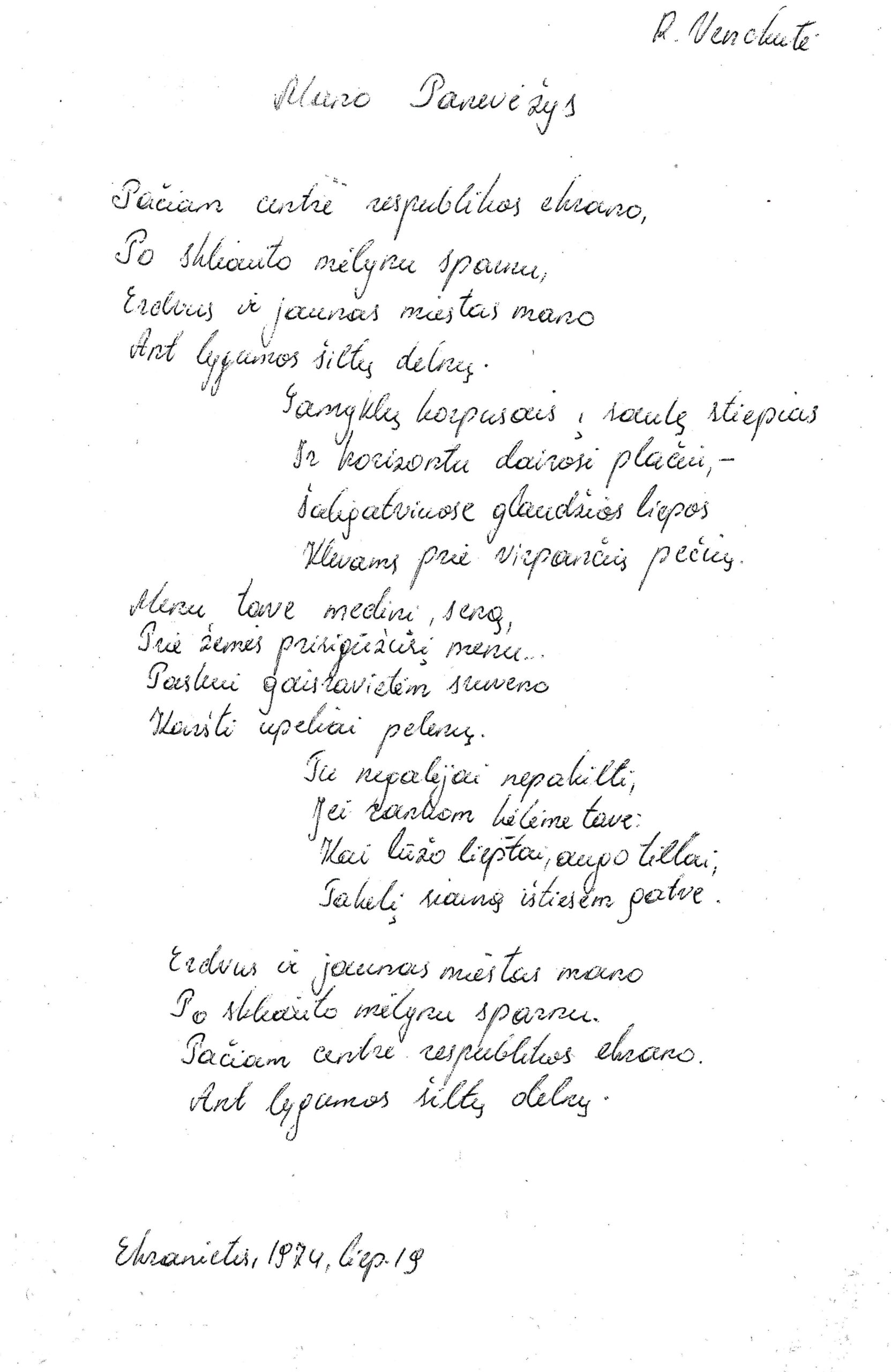 Venskutė, R. Mano Panevėžys // Ekranietis, 1974, liepos 19, p. 2.